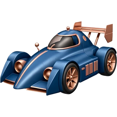 Real-looking dark blue and rosegold-accented racing car for furry-faced evil alien scary robot teddy bear with rear spoiler (Star Wars style) emoji