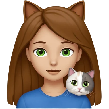 Crea un emoji donde salga un chico de pelo moreno con los ojos claros, una chica de pelo morena con los ojos marrones y UN gato europeo comun de pelaje oscuro y ojos verde claro, quiero que se esten abrazando el chico y la chica, y el gato este en el medio de los dos emoji