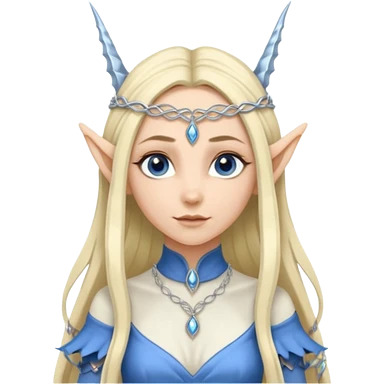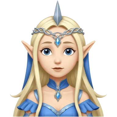 a girl elf with very long blond hair and a twisted headpiece, she's got pointy ears and a blue/silver dress emoji