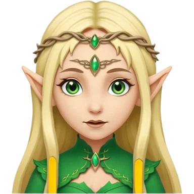 a girl elf with very long blond hair and a twisted headpiece, she's got pointy ears emoji