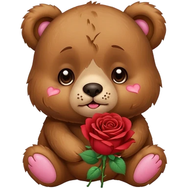 Cute bear with this emoji 🥹 holding roses with this emoji