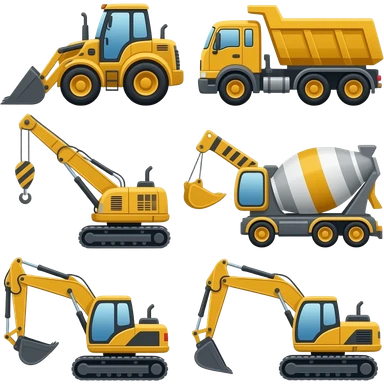 Bulldozer, dump truck, crane, concrete mixer, backhoe, and excavator emoji