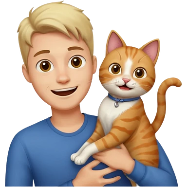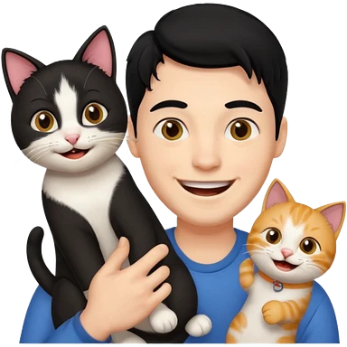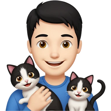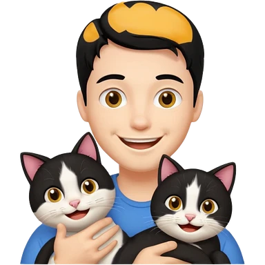 excited guy with a cat, black hair emoji