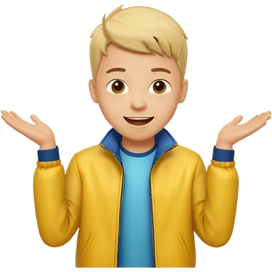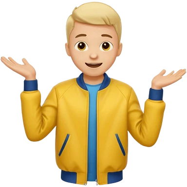 excited boy with good hair cut shrugging his shoulder, wearing yellow jacket and smile emoji