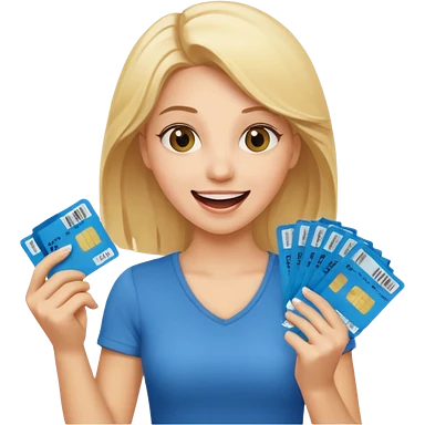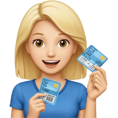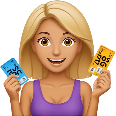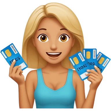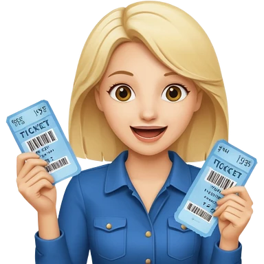 excited blonde woman holding tickets emoji