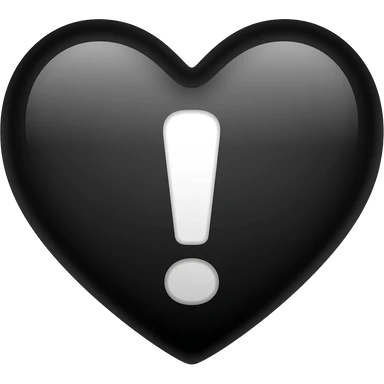 exclamation mark with black heart, glossy, cute, 3D emoji style, soft lighting emoji