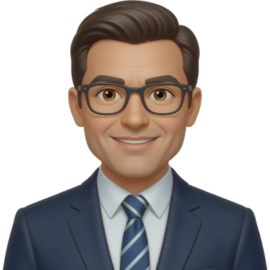 A flat-style illustration of a business executive confidently, holding a digital tablet or folder. The character wears smart business attire, clean cartoon style, white background, iOS emoji aesthetic. emoji