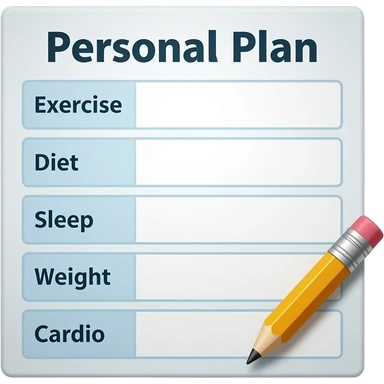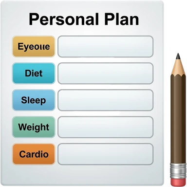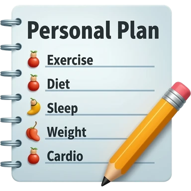 A gym workout plan, titled "Personal Plan," should clearly state the following: exercise diet sleep weight cardio emoji