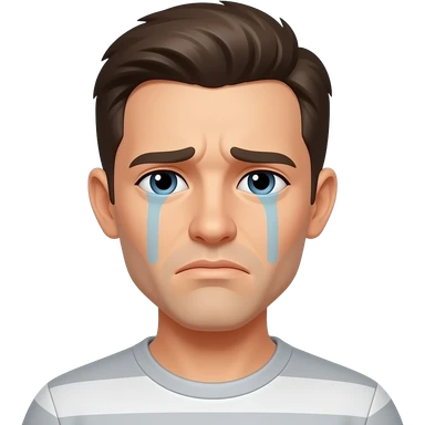 create an emoji of a man wearing a blue shirt, laying face down on the ground looking exhausted and a puddle around his face making him look melted emoji