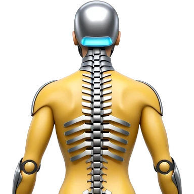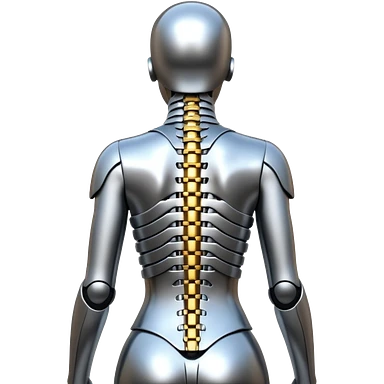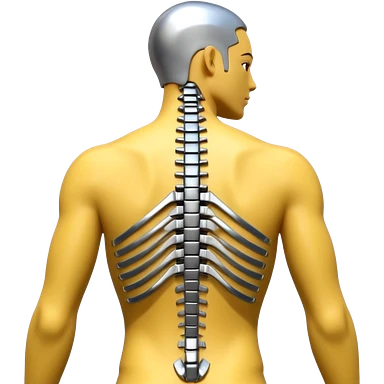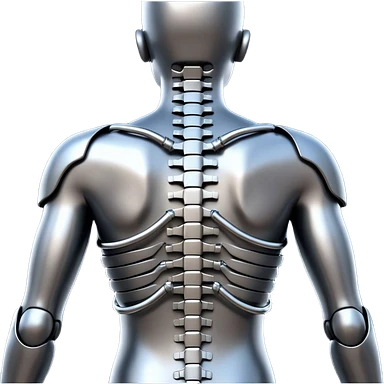 3D render of Exoskeleton Spine, futuristic cyborg aesthetic, fusion of organic skin and chrome metal, chrome metal vertebrae on a human back, emoji style, isolated on white background --v 6.0. emoji