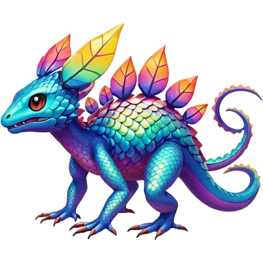 Exotic randomly colored colorful light cute lush warm-colored Fakémon-Fionbri-Vernid-Genet-creature with markings (full body) emoji