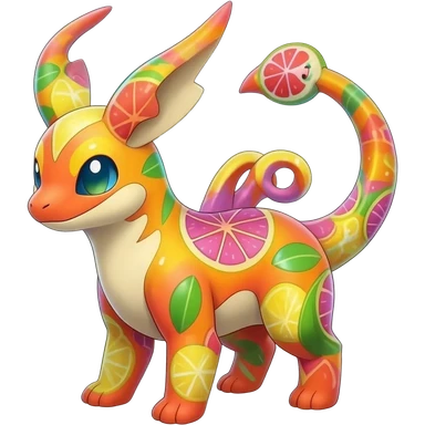 Colorful Fruity Warm-colored Tropical Exotic Vernid-Sergal-Trico-Silvally-Nargacuga-fusion-hybrid-animal-creature, full body emoji