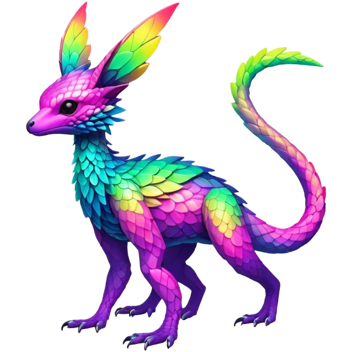 Exotic vibrant lush neon-colored Fakémon-Trico-creature (full body) emoji