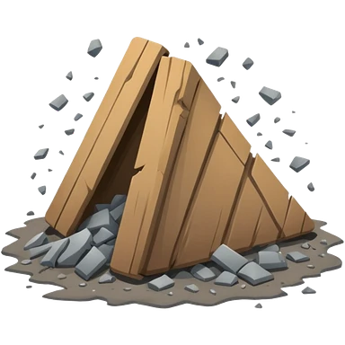 3D iPhone style emoji of debris and ruins, broken pieces of concrete and metal scattered, chaotic structure, isolated on white background, soft shadows, high detail, playful and cute. emoji