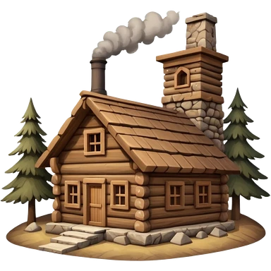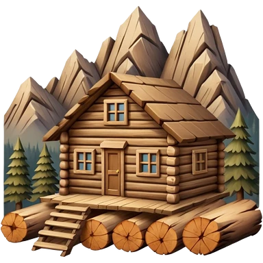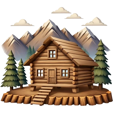 wooden house made of logs in the mountains emoji