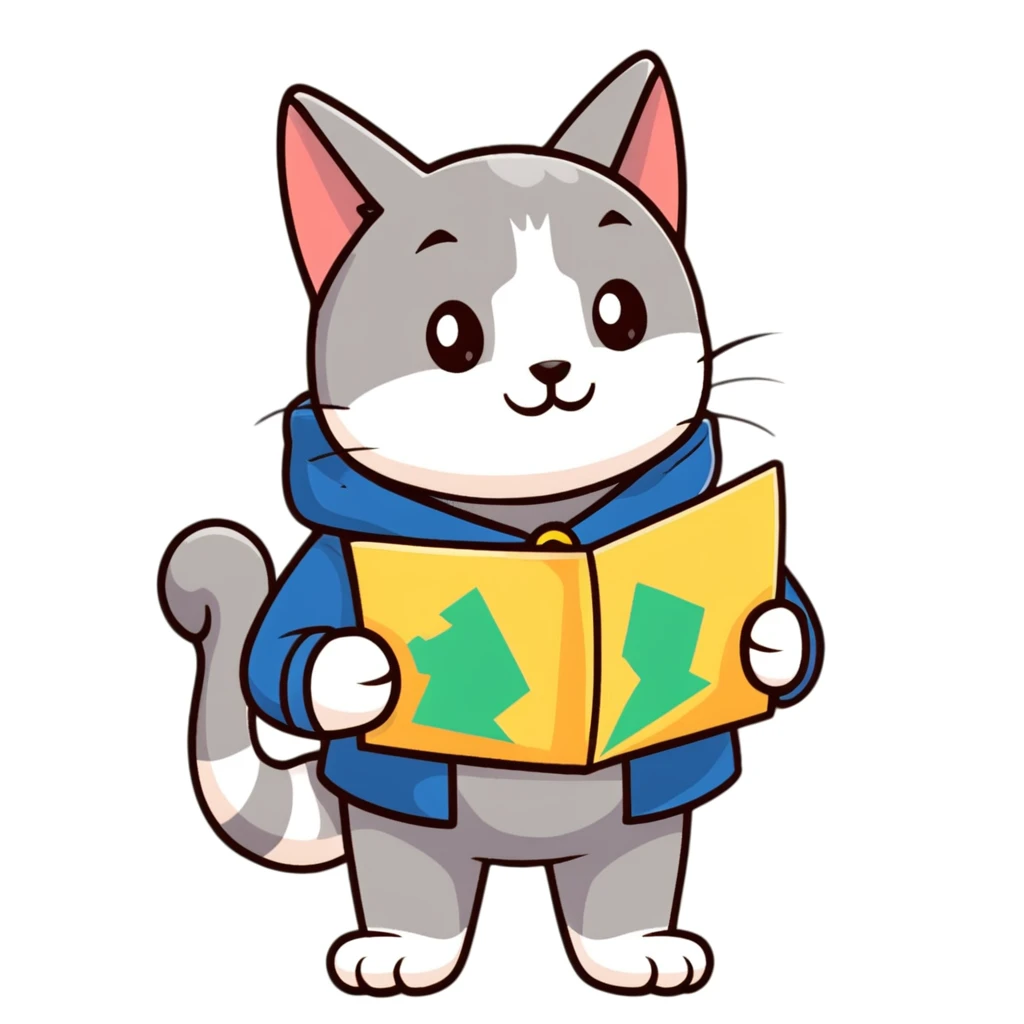 Explorer cat with map in paws, mountains and starry sky behind, wearing explorer outfit and cloak blowing in wind, gazing at horizon image | AI Emoji Generator