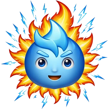 Rayos, centellas y fuego con expresiones de asombro azul emoji