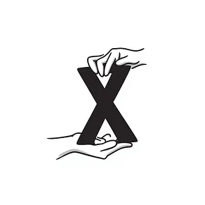 expressive hand holding a red X