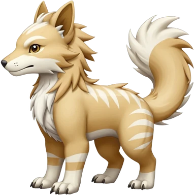 Tropical Tiny Marked Patterned Tribal Exquisite Delicious Growling Gargantuan Barking Pulverizing Garurumon-Renamon-Linoone-fusion-hybrid-creature (full body) emoji