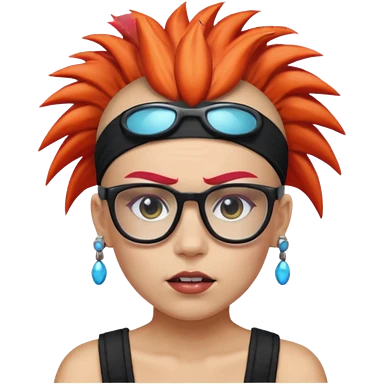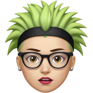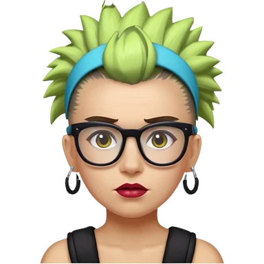 extreme mohawk person face headband glassess excessive makeup glowing hair emoji