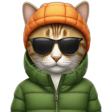 extremely angry monkey wearing dark blue puffer jacket, holding blue origami dinosaur roller backpack, wearing orange cap with Jurassic Park logo, Android emoji style emoji | AI Emoji Generator