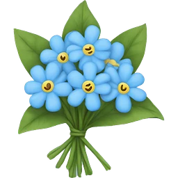 extremely detailed bouquet of baby breaths, delphiniums, forget me nots, and blue hydrangeas emoji | AI Emoji Generator