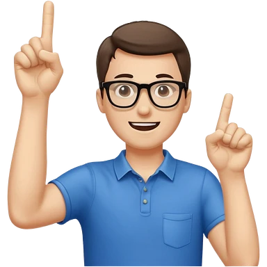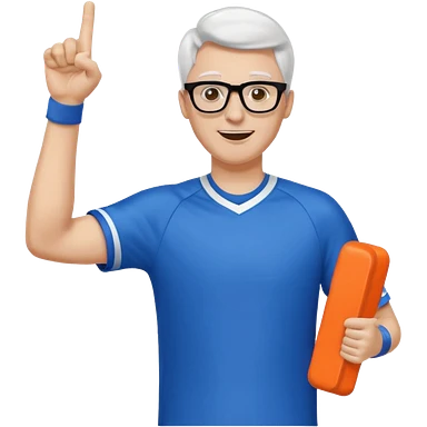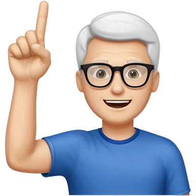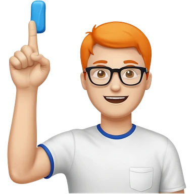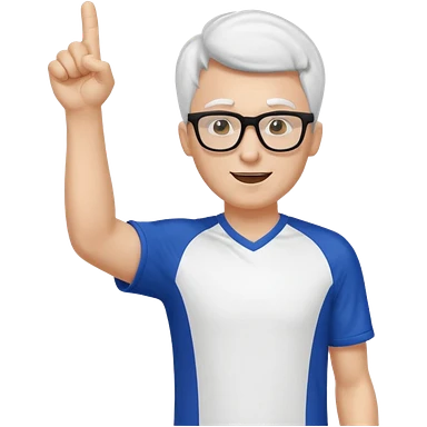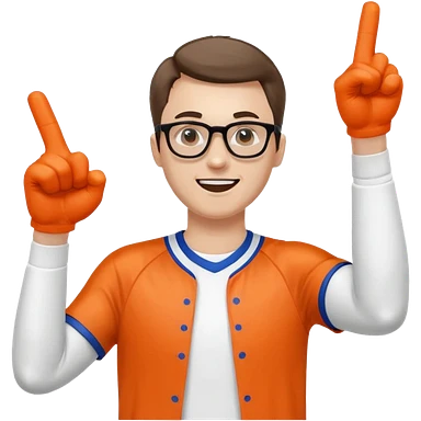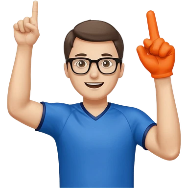 A slim man with glasses, pumping the foam finger in the air with bright enthusiasm. emoji