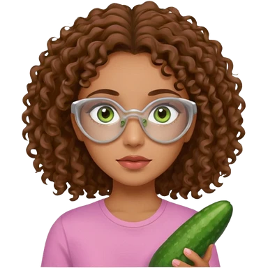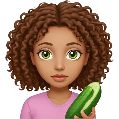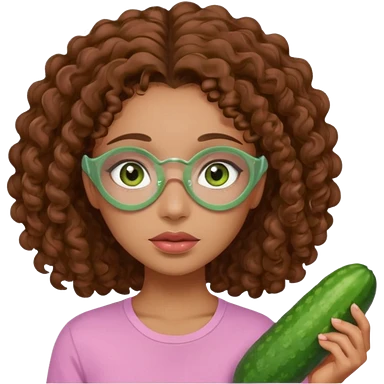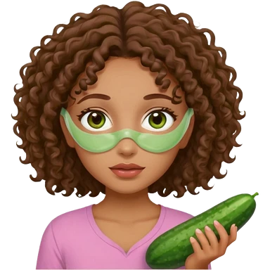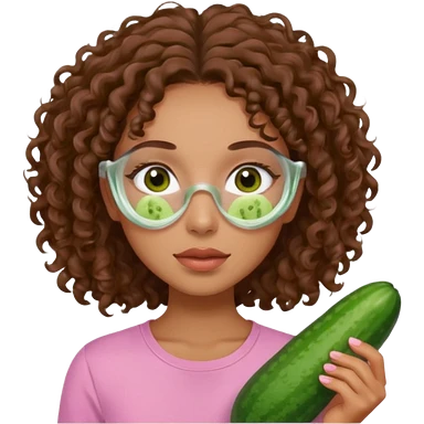 lightskin girl having a spa day with green skincare clay mask and ,cucumbers on her eyeballs and brown curly hair and a pink shirt emoji