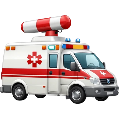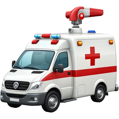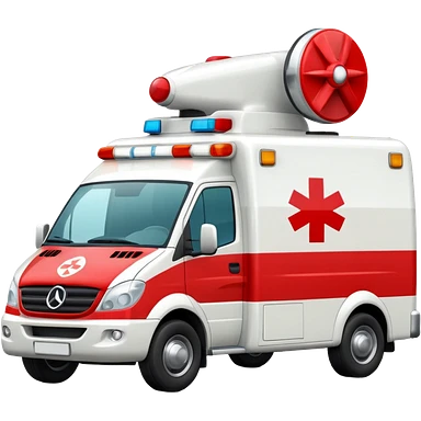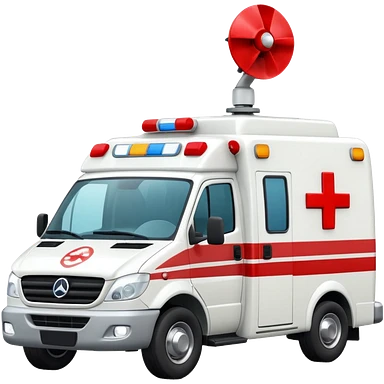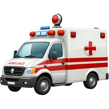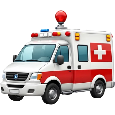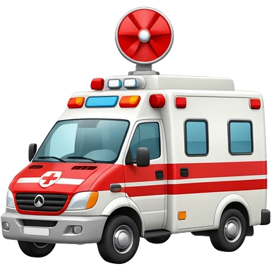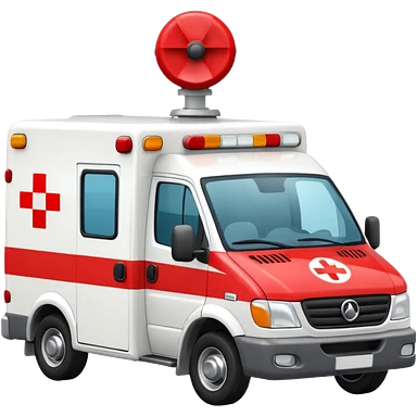 A modern white-and-red ambulance van with flashing rooftop siren. emoji