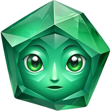 very sharp green gem mineral , multiple irregular chunks, very shiny with two eyes emoji