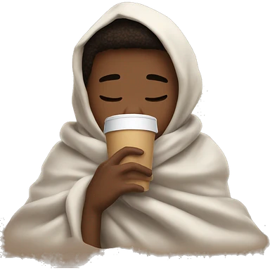 Little brown Boy inside a blanket sipping coffee Eyes Closed without bed emoji