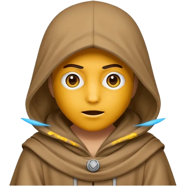 angry ninja face emoji, classic yellow emoji face, mouth fully covered by blue ninja uniform, only eyes visible emoji