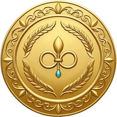 Futuristic anniversary medal badge, circular emblem with embossed Roman numeral I, metallic gold finish with electric blue glow accents, subtle outer energy ring, sci-fi web3 game UI style, polished 3D game asset, dark background, centered composition, high detail emoji