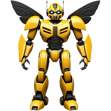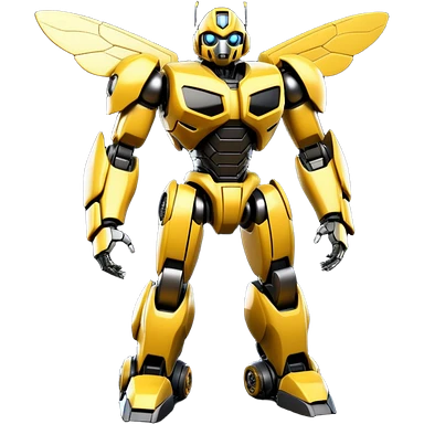 Futuristic robotic bumblebee character in the exact style of Bumblebee from Transformers movies, highly detailed 3D model emoji