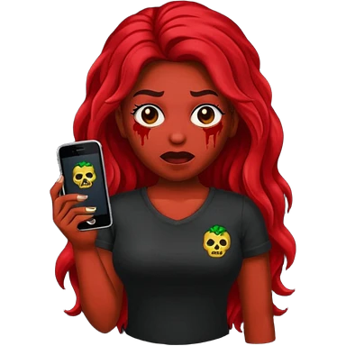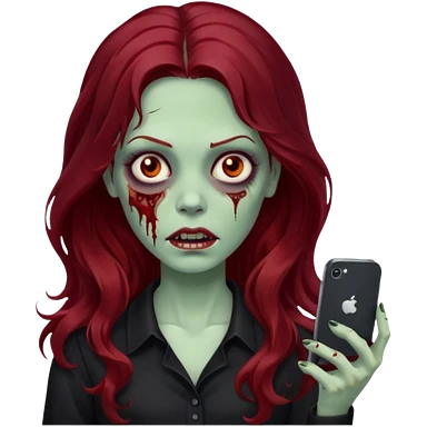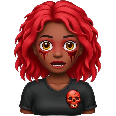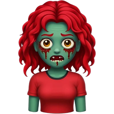 Faça me um emoji de um zumbi mulher de cabelos vermelho escuro longos ondulado usando uma blusa preta, faça no estilo iphone emoji