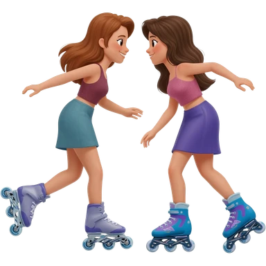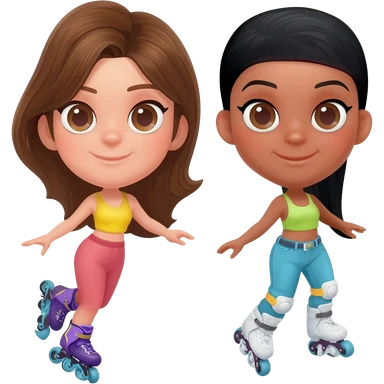 dos amigas de cabello café y negro en patines de linea emoji