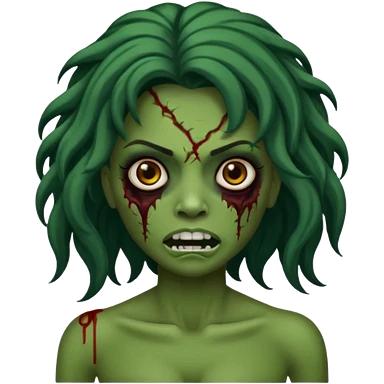 Faça um emoji de zumbi que se pareça comigo. Categorias: cabelo ondulados pretos, pele verde, usa aparelho! Personagem: feminina. emoji