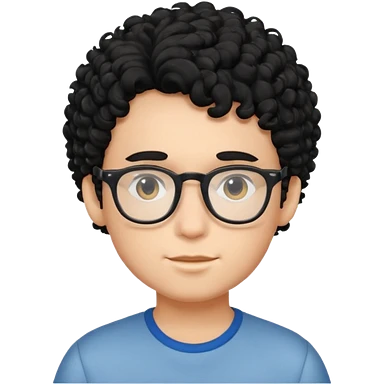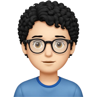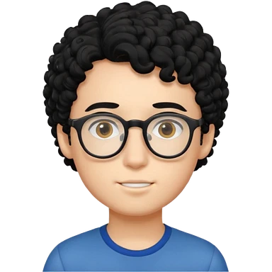 faça um garoto com cabelo preto cacheado, com óculos emoji