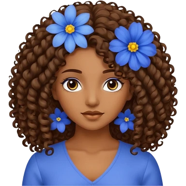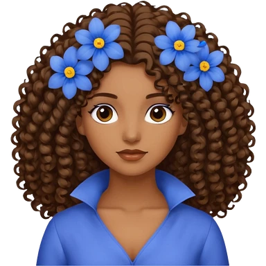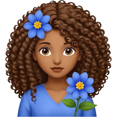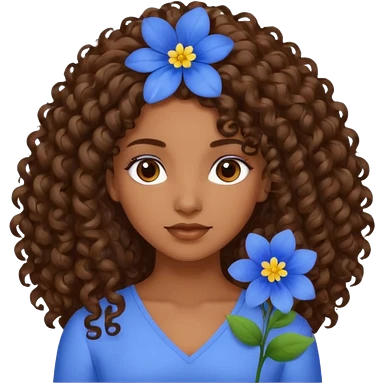 Qro uma moça morena de cabelo cacheado com uma flor azul no cabelo com o cabelo baixo emoji