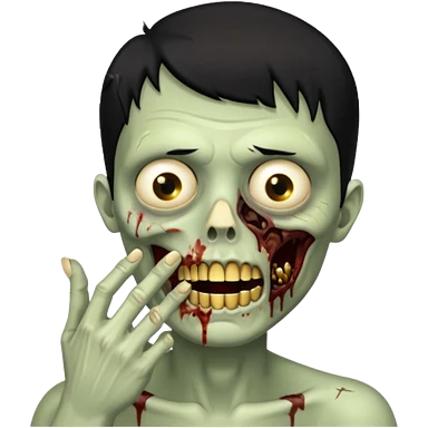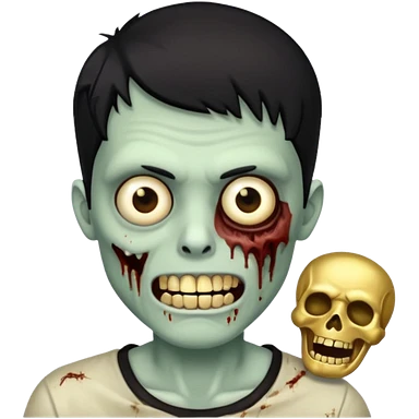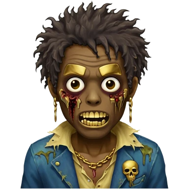 faça um homem zumbi, de cabelo baixo mostrando o dente de ouro emoji | AI Emoji Generator