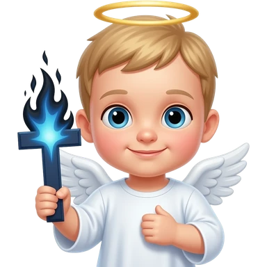 faça uma cruz azul escura saindo fogo preto dela, faça um anjo bebe segurando essa cruz emoji