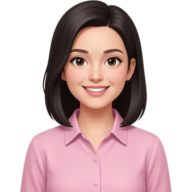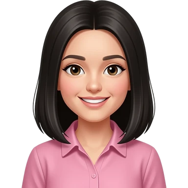 Gere um emoj de uma linda moça de pele clara,cabelo médio,liso,preto, sorrindo. A moça veste uma blusa elegante rosa emoji