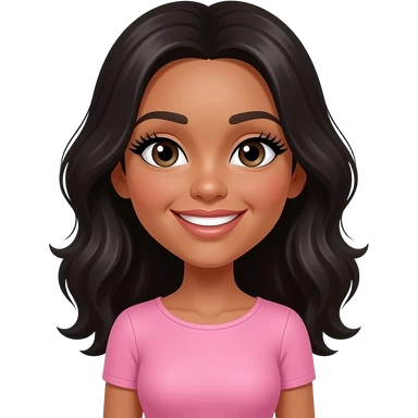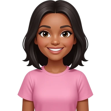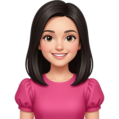 Gere um emoj de uma linda moça de pele clara,cabelo médio, na altura do ombro,,liso,preto, sorrindo. A moça veste uma blusa mula manca pink emoji