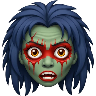 Faça um emoji de zumbi versão iPhone e faça uma zumbi com cabelo longo e preto e com franja. emoji