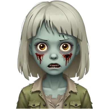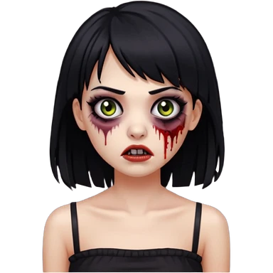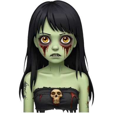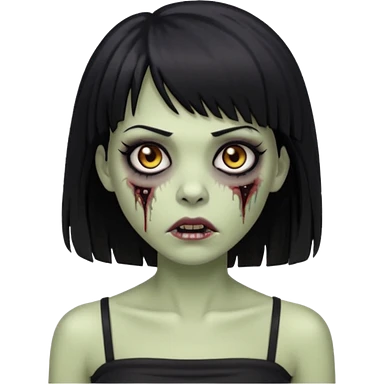 Faça um emoji de zumbi versão iPhone e faça uma zumbi com cabelo longo e preto e com franja. emoji