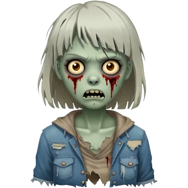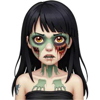 Faça uma mulher zumbi de franja cabelo longo preto 🧟♀️ emoji | AI Emoji Generator