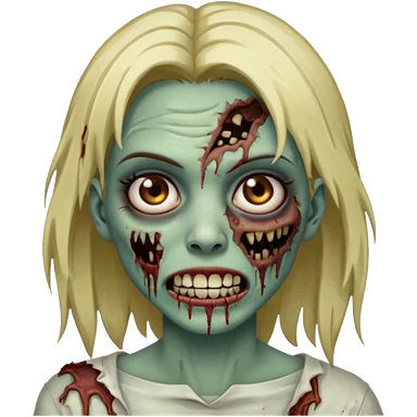 Faça uma zombie mulher bonita verde com olhos castanhos cabelos pretos partido ao meio liso, com estilo emoji