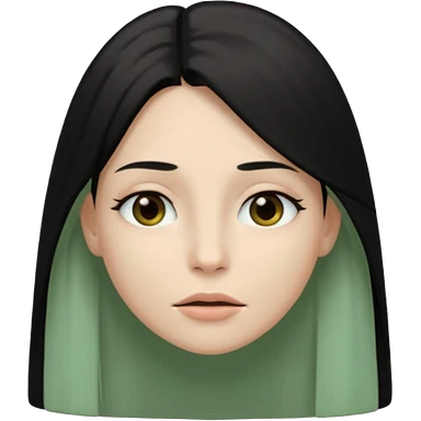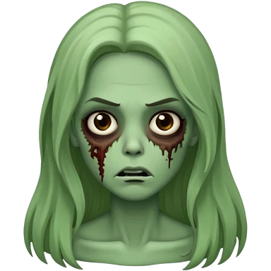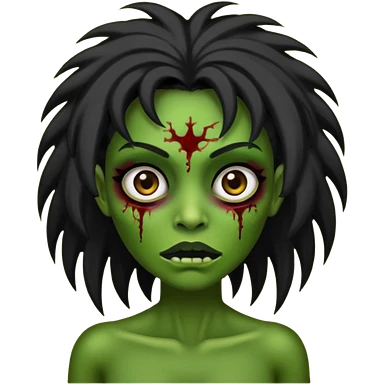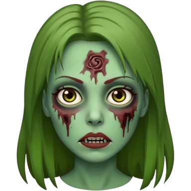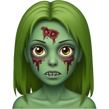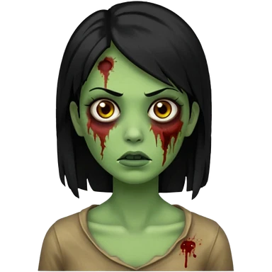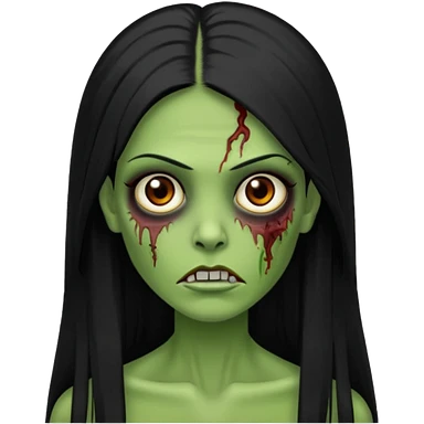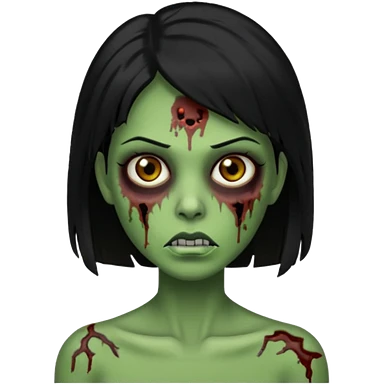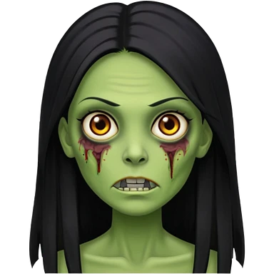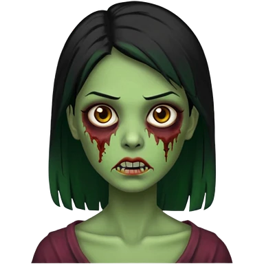 Faça uma zombie mulher bonita verde com olhos castanhos cabelos pretos partido ao meio liso, com estilo emoji
