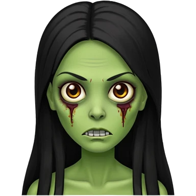 Faça uma zombie verde mulher com cabelos preto, liso e longo de olhos castanhos emoji