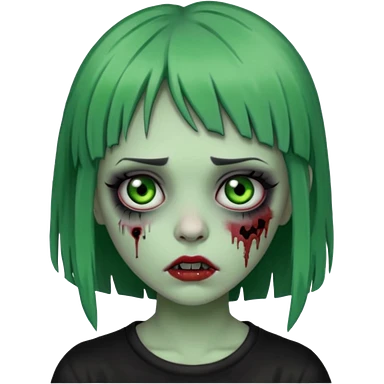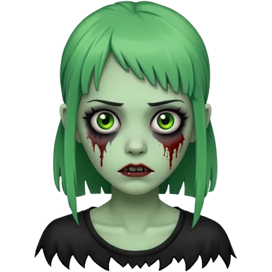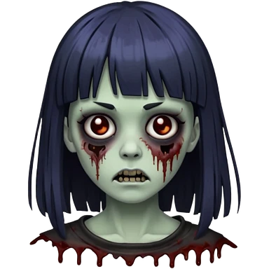 Faça um emoji de zumbi versão iPhone e faça uma zumbi com cabelo longo e preto e com franja. emoji